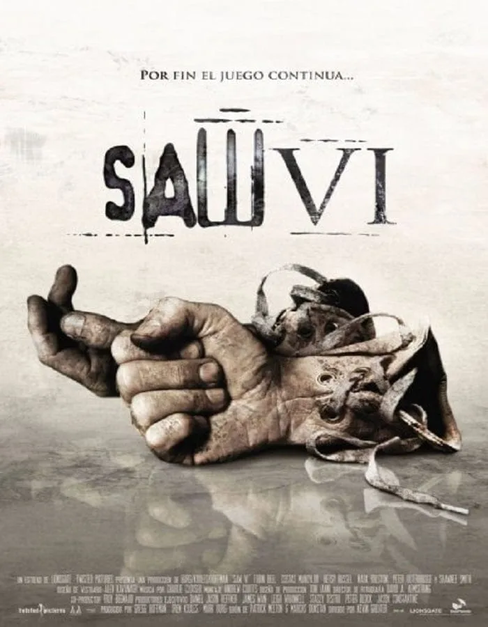 Saw 6 (2009) ซอว์ เกมต่อตาย..ตัดเป็น หลังจากเจ้าหน้าที่พิเศษเอฟบีไอสแตรมได้ตายลงไป นักสืบฮอฟฟ์แมนก็สานต่อเกมโรคจิต ขณะที่เอฟบีไอใกล้ถึงตัวเขา เขาจึงจำเป็นต้องเร่งเดินเกม แล้วแผนลวงชุดใหญ่ของจิ๊กซอว์ก็เป็นที่เข้าใจในที่สุด