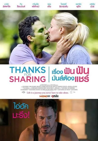 ภาพยนตร์ตลกซาบซึ้งที่รวบรวมตัวละครสามตัวที่เรียนรู้ที่จะเผชิญหน้ากับโลกที่ท้าทายและสับสนบ่อยครั้งขณะที่พวกเขาต่อสู้ร่วมกันกับปีศาจทั่วไป “เรื่อง ฟัน ฟัน มันส์ต้องแชร์” การเสพติดเซ็กส์อดัม (แสตมป์รัฟฟาโล) ได้รับการตรวจสอบเป็นเวลา 5 ปีในการเป็นทาสทางเพศของเขา ยับยั้งชั่งใจด้วยข้อเสนอความช่วยเหลือจากการสนับสนุนของเขา Mike (Tim Robbins) นีลผู้มาใหม่ (จอชกาด) มองหาความช่วยเหลือจากข้อเสนอของอดัมโดยเชื่อว่าเขาจะเป็นไกด์ของเขา “Thanks for Sharing” แต่นีลไม่มีพัฒนาการเหมือนเดิมและยังคงรบกวนผู้หญิงในที่ทำงานบนท้องถนนและบนรถไฟใต้ดิน อดัมยังได้พบกับฟีบี้ (กวินเน็ ธ พัลโทรว์) ที่ยุติธรรมซึ่งอาจเป็นจุดสุดยอดสำหรับเขา แต่อดัมไม่ได้มีความสัมพันธ์เนื่องจากเขาจำได้ว่าเขาตกเป็นทาสทางเพศและฟีบีไม่ได้เดทกับคนติดยา ในขณะที่อดัมท่องไปในน่านน้ำแห่งความสัมพันธ์อันซาบซึ้งไมค์ต่อสู้กับเด็กที่ติดยาคนก่อนของเขาซึ่งได้กลับบ้านอย่างยุติธรรมและนีลสร้างความสัมพันธ์กับผู้หญิงอีกคนในกลุ่มผู้ติดเซ็กส์ แต่ความเป็นเพื่อนที่ไม่ลงรอยกันอาจเป็นสิ่งที่เขาต้องการได้อย่างแม่นยำ